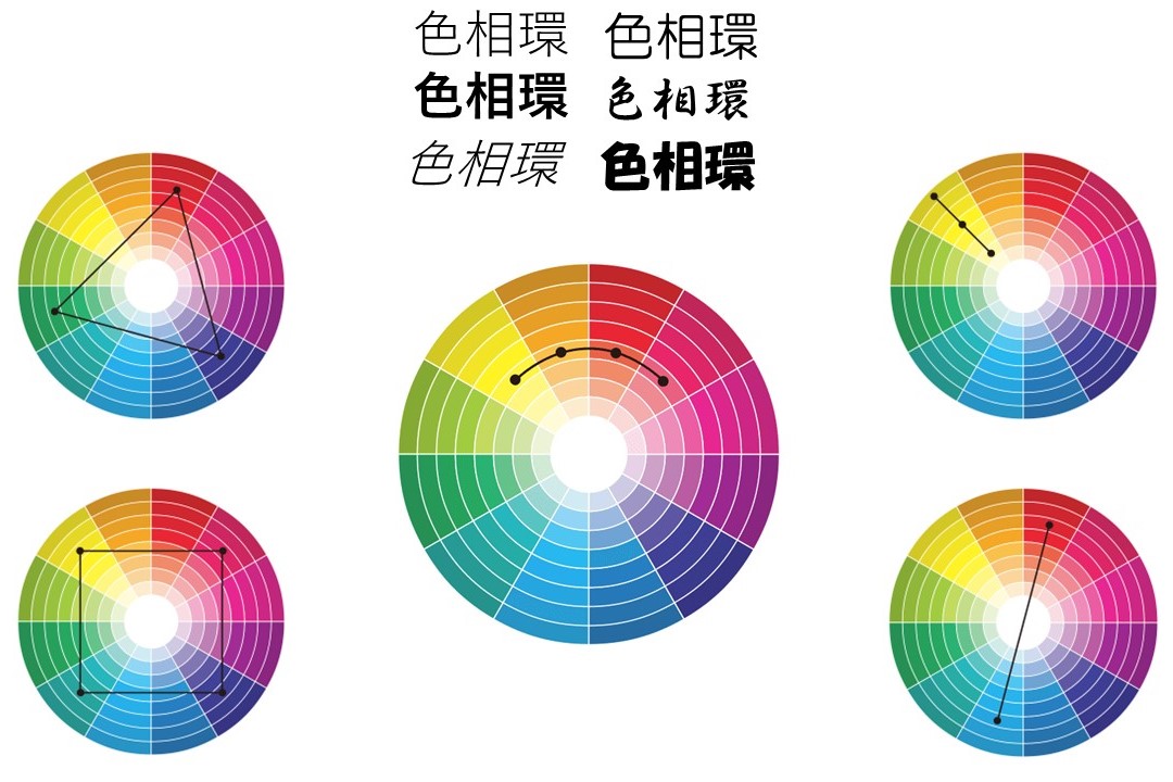 敢えていろいろな字体で「色相環」と表記してみましたが、