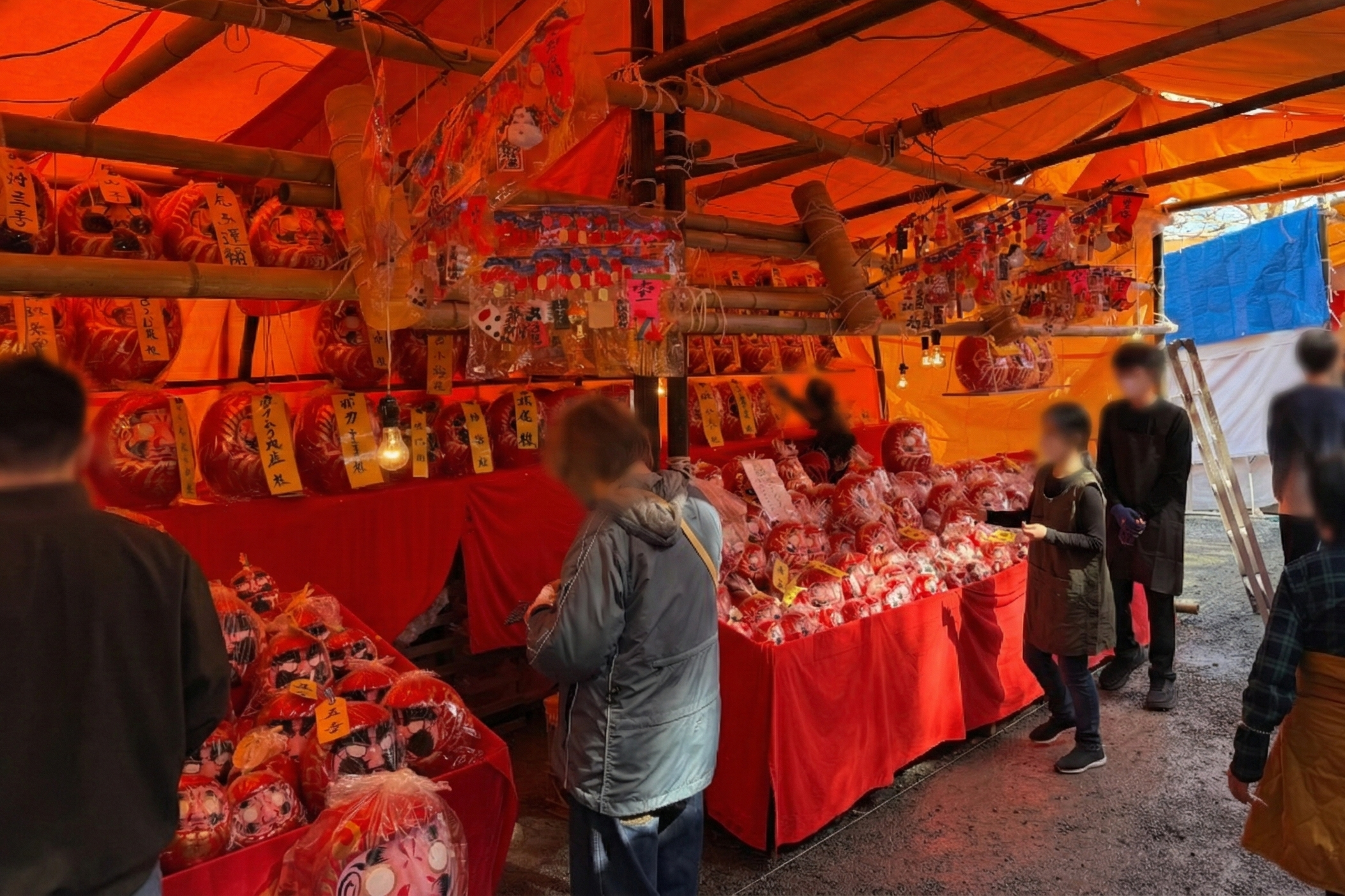 扉写真のようなだるまの屋台はかなり立ち並んでいます